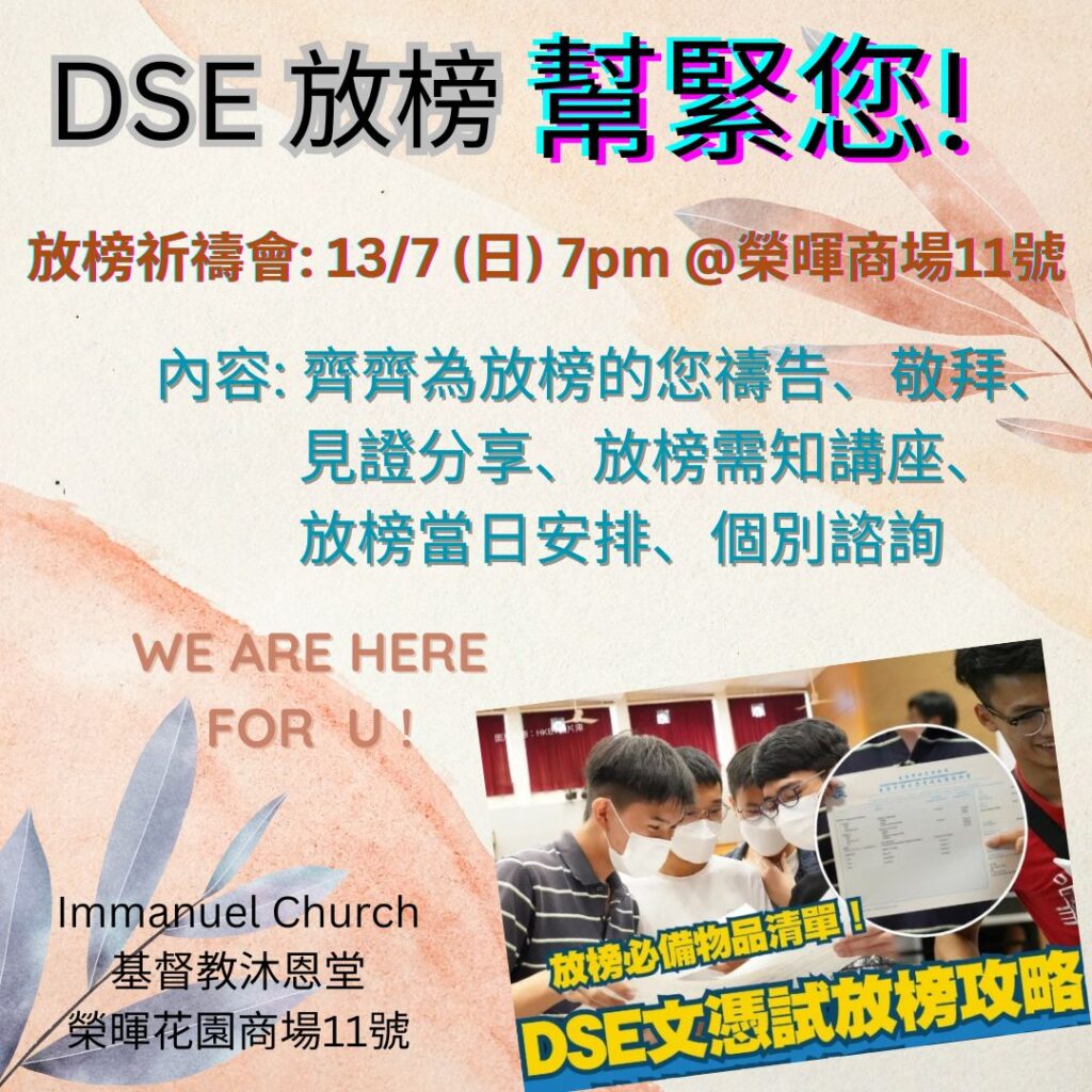 不論是13/7(日)晚的放榜祈禱會,還是16/7(三) 放榜當日的支援(早茶集氣、諮詢和陪跑),