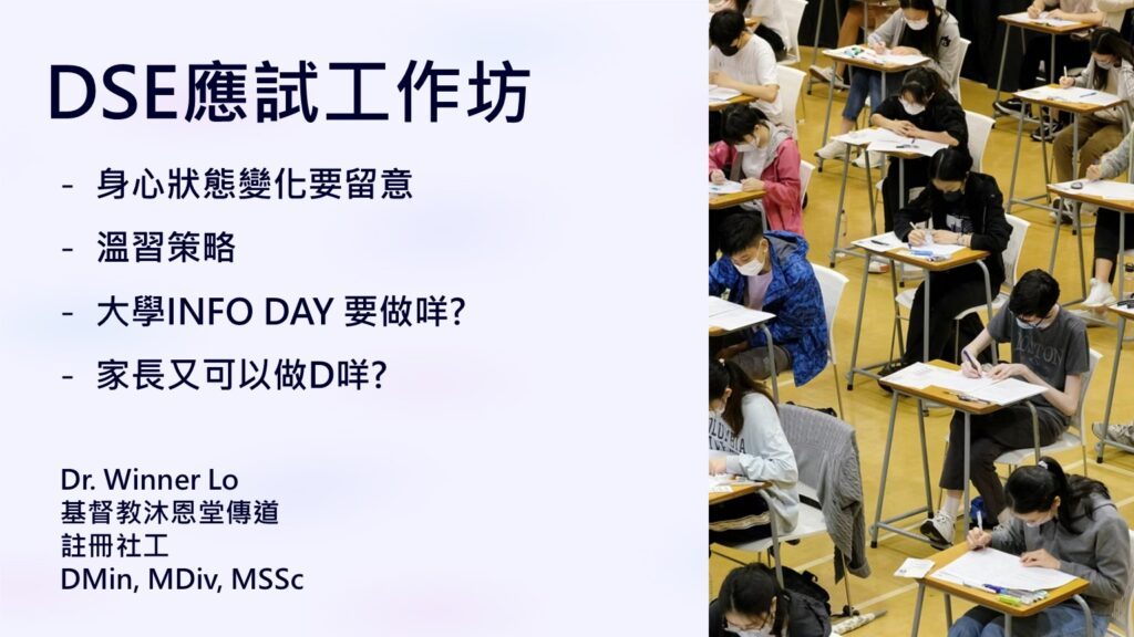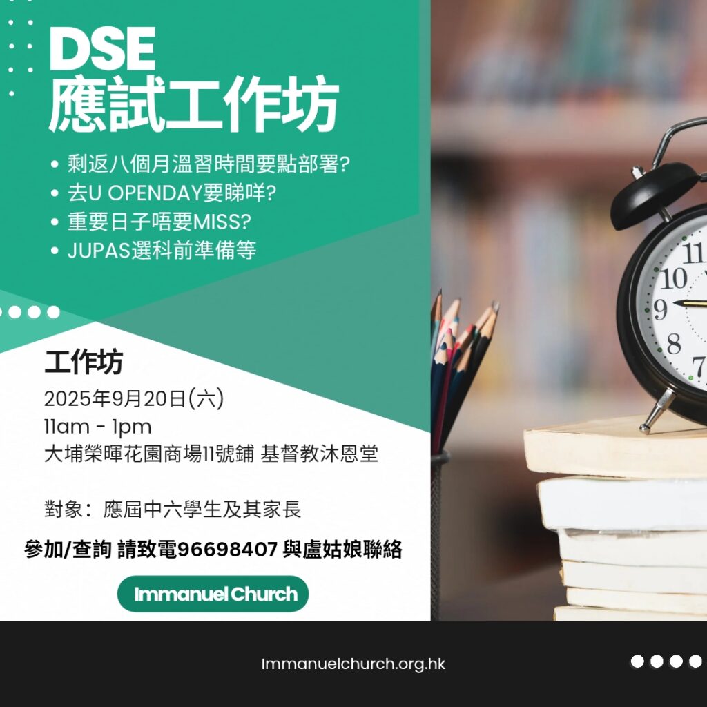 溫習時間分配、平衝身心靈健康的重要、參觀大學INFO DAY時要留意的事項,以及重要日程提醒等。